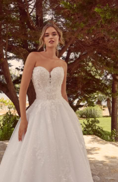 Tauche ein in die Welt des Luxus und der Eleganz mit unserem traumhaften Ballbrautkleid - dem perfekten Begleiter für deinen großen Tag. Lass dich von den eleganten Verzierungen und edlen Spitzendetails verzaubern und erlebe, wie dieses Kleid deine schönsten Hochzeitsträume wahr werden lässt.