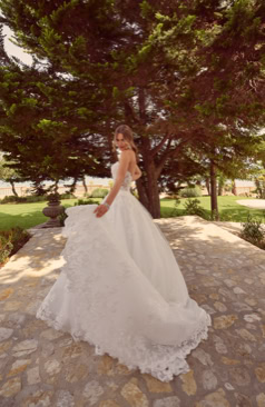 Der bezaubernde Rückenausschnitt des Kleides verleiht dir eine moderne und faszinierende Ausstrahlung, die alle Blicke auf dich ziehen wird. Jedes Detail dieses Brautkleides wurde mit größter Sorgfalt und Liebe zum Handwerk gestaltet, um ein wirklich einzigartiges und unvergessliches Hochzeitsoutfit zu schaffen.