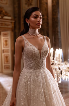 Fühle dich wie eine echte Prinzessin an deinem besonderen Tag in diesem glamourösen Ballkleid, das deine Traumhochzeit perfekt abrundet. Kombiniere es mit einer schillernden Halskette für den ultimativen Glanz und verleihe deinem Brautensemble den letzten Schliff.