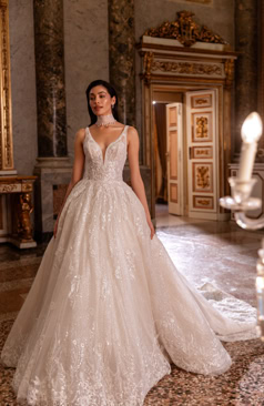 Das Ballkleid ist mehr als nur ein Kleid - es ist ein Statement, das deine Persönlichkeit unterstreicht und dich an deinem großen Tag im Rampenlicht erstrahlen lässt. Gönn dir den Luxus dieses exquisiten Designs und werde zur strahlenden Hauptfigur deiner eigenen Märchenhochzeit!