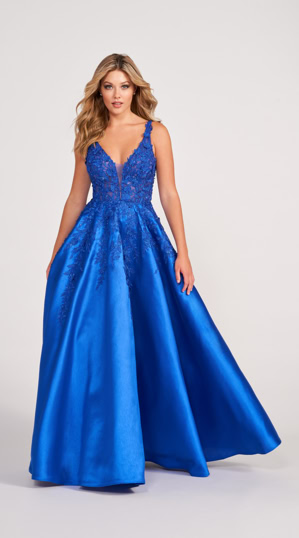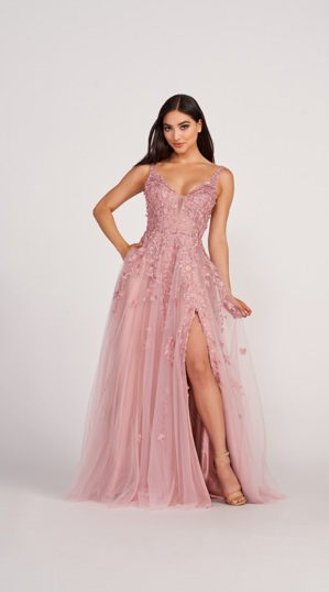 Ein himmlisches pompöses Ballkleid. Moderne 3D-Blumen, funkelnde Spitzendetails, ein verführerischer V- Ausschnitt, zarte Träger, funktionale Taschen im Hüftbereich und ein hinreißender Rückenausschnitt bringen das Abendkleid zum Strahlen. Perfekt für Abschluss- und Abibälle.