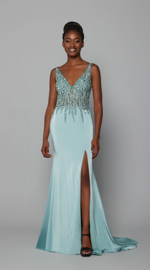 Zusehen ist hier eine funkelnde und glitzernde Schönheit im figurschmeichelnden Fit and Flare Stil. Ein sexy Beinschlitz, ein eleganter Ausschnitt, zarte Spaghettiträger und ein offener Rückenausschnitt umrahmen den wundervollen Look dieses Abendkleides. Geschlossen wird das Kleid mithilfe eines Reißverschlusses im Bereich des unteren Rückens.