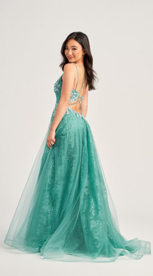 Die Perlen-Spitzenapplikation schmücken dieses fesselnde und romantische A-Linien Abendkleid. Der funkelnde Glitzertüll schimmert in jeder Bewegung und verleiht dem Kleid Raffinesse und Glamour. Der tiefe Rücken mit zarten Trägern ist ein weiteres zauberhaftes Detail.