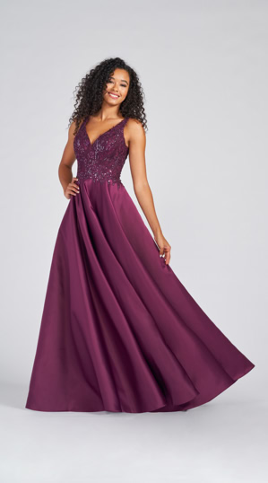 Ein funkelndes Ballkleid aus Satin mit verzierten Glitzerdetails. Die A-Linie hat einen herzförmigen Ausschnitt, dezente Träger, einen exklusiven Beinschlitz und eine elegante Schleppe. Ein zusätzlicher Blickfang ist vor allem der verspielte Rückenausschnitt. Geschlossen wird das Kleid mit einem Reißverschluss unterhalb des Rückenausschnitts. Ein wunderschönes Ballkleid!