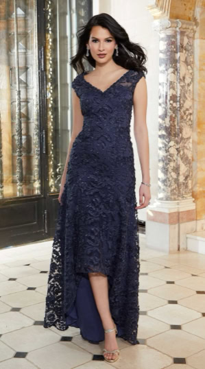 Das stilvolle Abendkleid aus perlenbesetzter Spitze verfügt über einen V-Ausschnitt und zierlichen Flügelärmeln mit einem zarten High-Low-Saum. Ein wundervoller Schnitt perfekt für viele Festliche Anlässe.