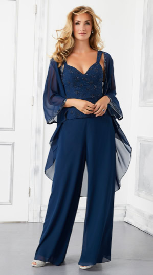 51846 Dreiteiliges Chiffon-Abend-Ensemble mit Kristallperlen
