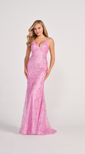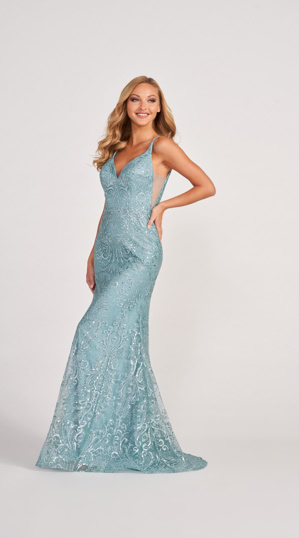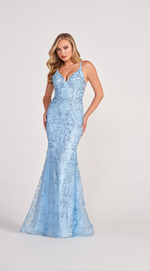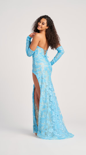 Das Abendkleid besticht durch ein glamouröses High Slit-Design, während der bestickte Pailletten-Tüll für einen eleganten Glanz von Kopf bis Fuß sorgt. Die romantische Allover-Spitze verleiht dem Kleid eine raffinierte Note, während das Stretch-Futter Komfort und Stil für eine unbeschwerte Nacht voller Tanz bietet.