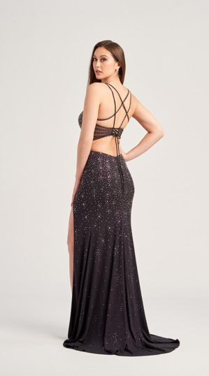 Elegant, sexy und wunderschön! Dieses Abendkleid ist ein absoluter Blickfang. Zahlreiche Details lassen dieses Kleid strahlen, wie der verführerische Beinschlitz, die luxuriösen Glitzerverzierungen aus funkelnden Kristallen und einem atemberaubenden Rückenauschnitt.