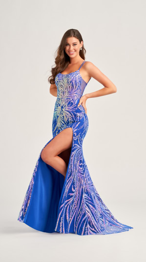 Eine farbenfrohe Schönheit in Form eines Abendkleides. Die A-Linie besitzt einen eleganten abgerundeten V-Ausschnitt, seitliche Taschen im Bereich der Hüfte, einen sexy Beinschlitz und zarte Spaghettiträger, die in einen spektakulären Rückenausschnitt hinüber laufen. Die Einzigartigkeit dieses Kleides sind die zusehenden farbigen Spitzenverzierungen im floralem Stil. Außerdem werden diese durch moderne 3D-Blumen besonders hervorgehoben. Ein wirklich beeindruckendes und brillantes Abendkleid.