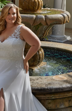 Ein romantisches Curvy A-Linien Brautkleid mit zauberhaften Details.